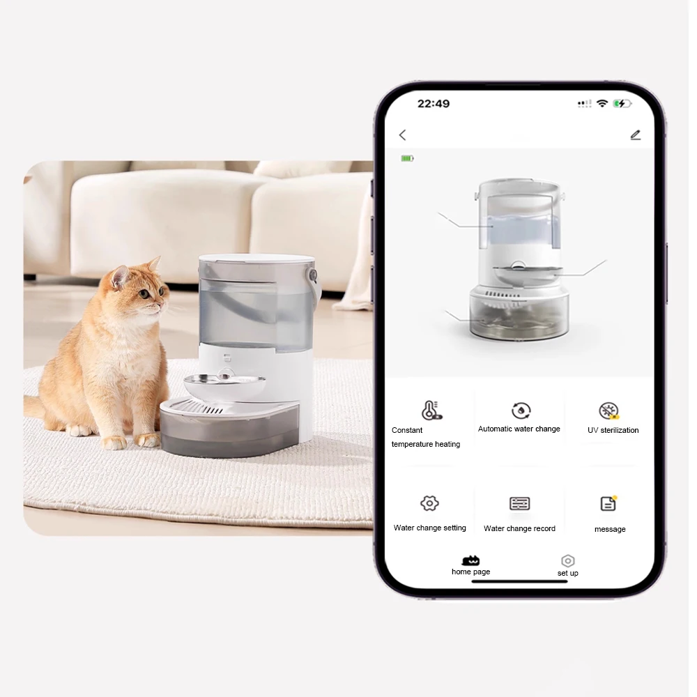 2 intelligent/timed dual modes: intelligent mode: automatic water change when the water volume is below 20% timed mode: timed water change, intelligent water change according to the pet's water consumption