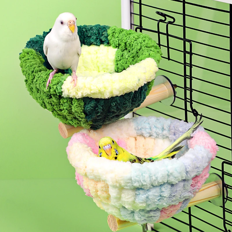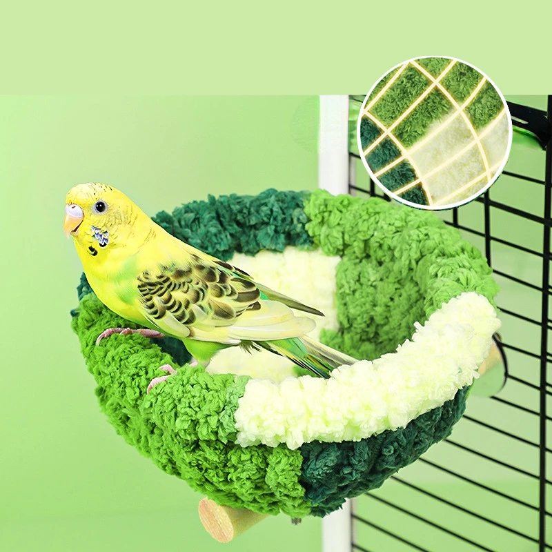Bird Cage Nest Warm Plush Nest with Stick Bird Beds Parrot Nest Parakeet Nest Cockatiel Bed Winter Sleeping Bed Bird Hammock