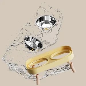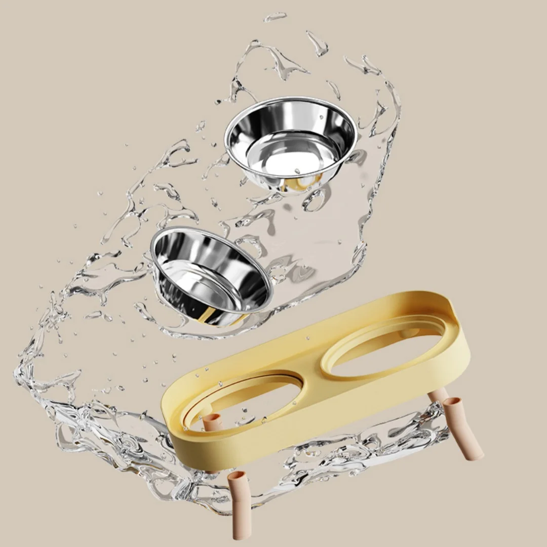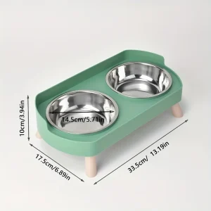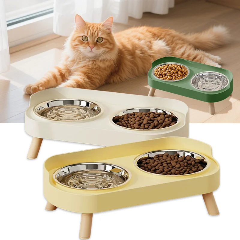 Cat Bowl Stainless Steel Double Bowl Anti Knock Pet Bowl Water and Food Integrated Cat and Dog Bowl Protects Cervical Spine