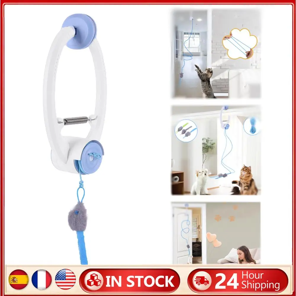 Door Hanging Automatic Retractable Kitten Toys with 3 Catnip Mice Teaser Electronic Self Play Feather Cat String Toy Interactive Cat Teaser Retractable Toys for Cat Kitten Playing Exercising