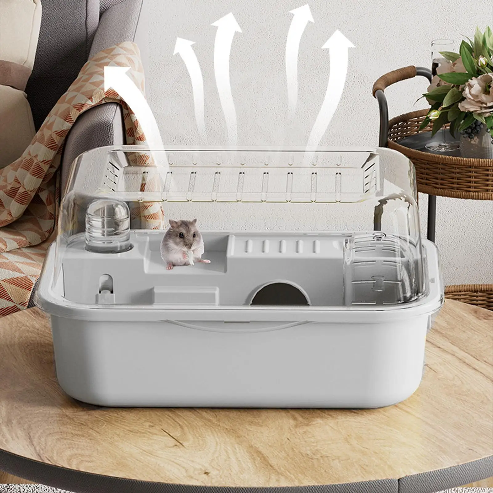 Small Animal Habitats feature a clear design with a running wheel for exercise and play. This silent cage suits hamsters gerbils squirrels bunny and chinchillas providing areas for resting dining and playing. Ideal for living rooms bedrooms homes dorms or travel it blends functionality with convenience while providing comfort and engagement for pets.