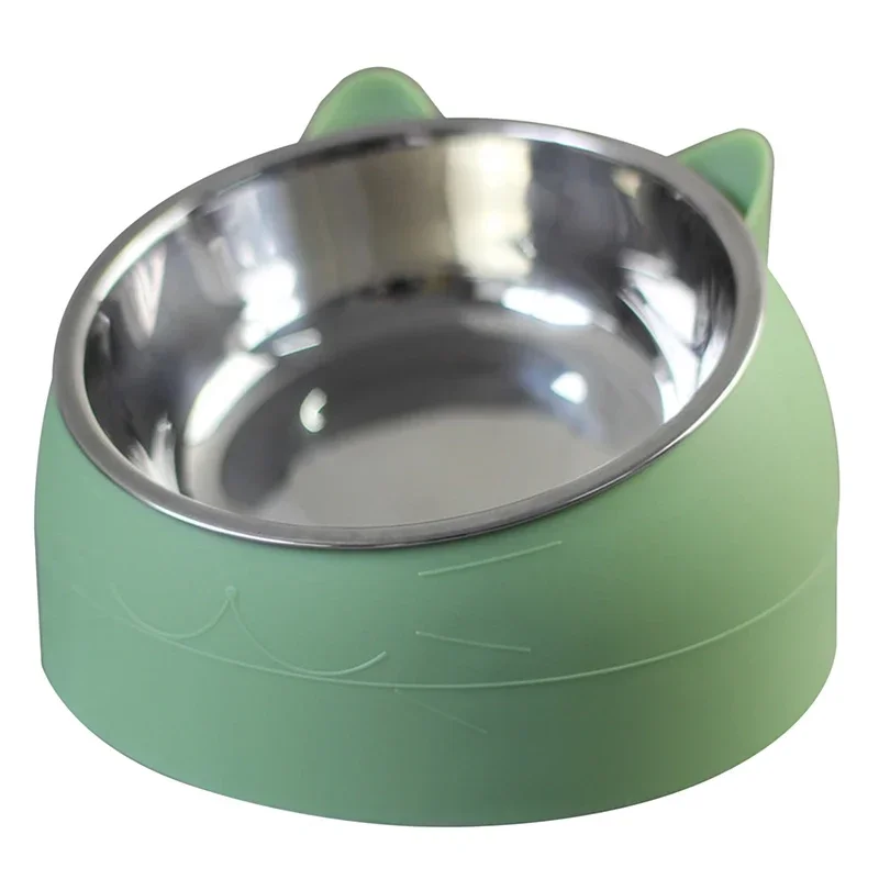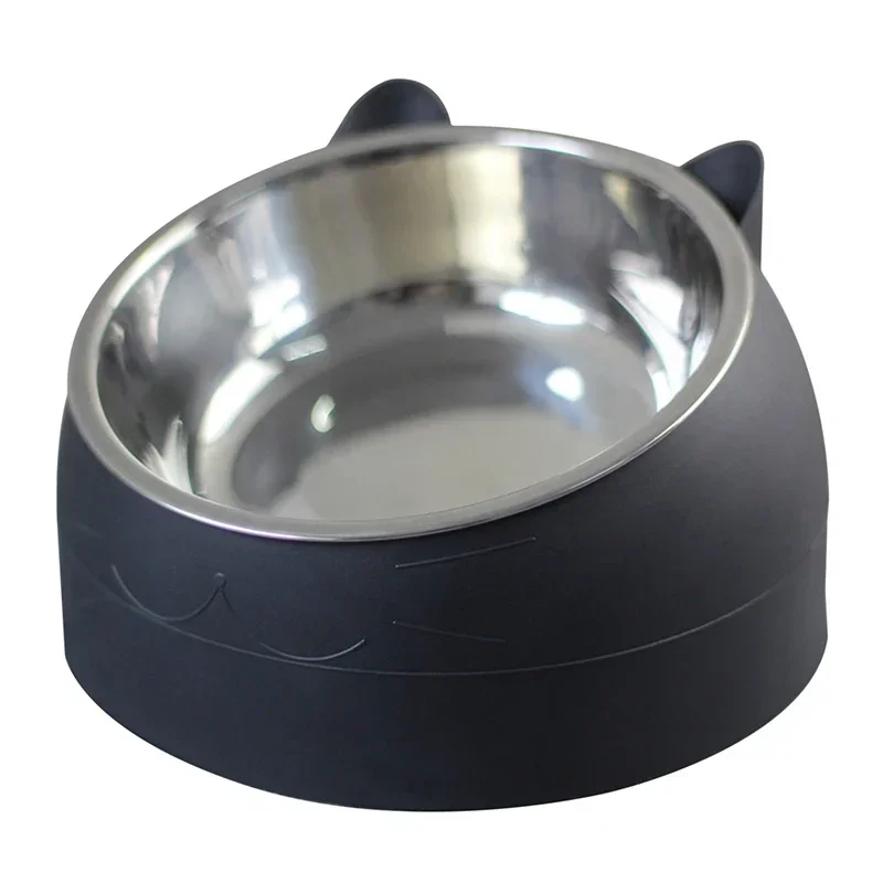 Stainless Steel Cats Food Bowls Non-slip Crash Pets Bowls Lovely Inclined Kitten Puppy Food Drinking Water Feeder Premium Design