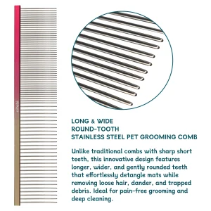 The needles of this Dog Combs For Grooming are rounded, making this Dog Grooming Comb very safe and won't hurt your pet.