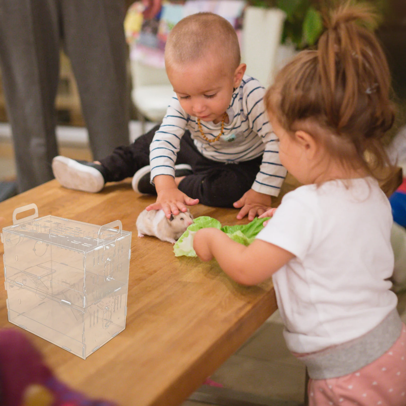 Acrylic Cage 30x20x30cm Transparent Small Pet Castle for Hamster Guinea Pig Chinchilla Hedgehog Safe