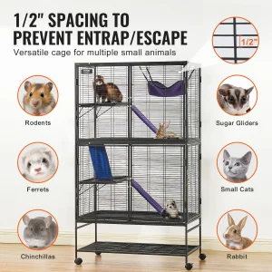 Sturdy and Practical: Reinforced thick metal square tubes ensures great stability and rust resistance thanks to the fine and even powder coating and welding. The small animal cage features narrow metal mesh spacing, with screw-in door latches, to prevent small animals from escaping.